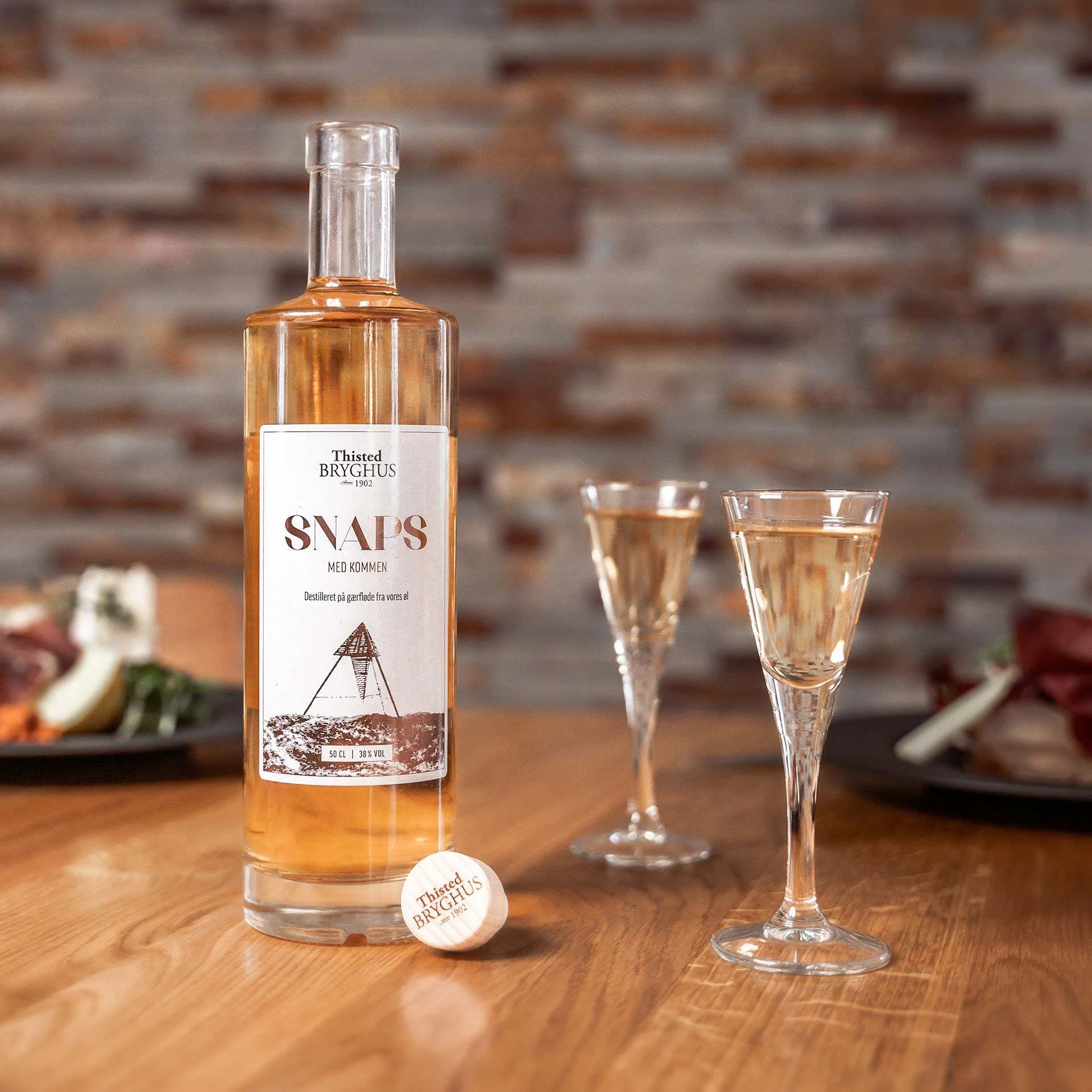 I samarbejde med Branderiet i Brande har Thisted Bryghus skabt en cirkulær serie af spiritus. I stedet for at lade god øl gå til spilde genanvender man gærfløden fra øl-fermenteringen. Slutproduktet er blevet en snaps med kommen samt en gin med enebær og sort peber. Begge med en intens og uforglemmelig smagsoplevelse.